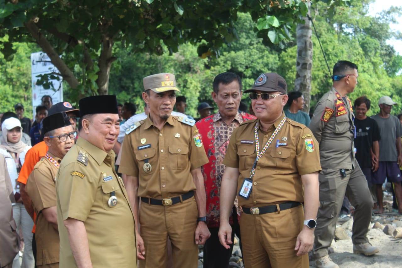 Tanggamus —Bupati Tanggamus Drs. M. Saleh Asnawi, M.A., M.H., bersama Wakil Bupati Agus Suranto memastikan pelaksanaan Program Strategis Nasional di wilayah pesisir Kabupaten Tanggamus melalui peninjauan langsung lokasi rencana pembangunan Kampung Nelayan Merah Putih (KNMP) di Pekon Tegineneng, Kecamatan Limau, Selasa (13/1/2026).
